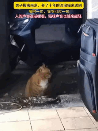 男子因为工作调度,要搬离南京,而他投喂了“十年”的流浪猫“豆豆”,跑来和他告别,这么长时间的喂养,男子说的话,豆豆也能听懂。 当豆豆听到男子说:“我要离开这里了,你保重哦”,它的叫声越来越轻,也很难过,它太想男子留下来了,可能已经把他当作主人了。 对于网友们的关心,男子也表示,豆豆的后续喂养已经交给了同事,他不能带走豆豆是因为“工作的原因”。 喂了十年饭,豆豆早就不是流浪猫了,在它心里男子就是它的“家人”。